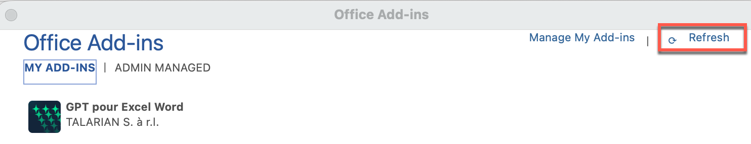 - In the Office Add-ins pop-up, click Refresh.