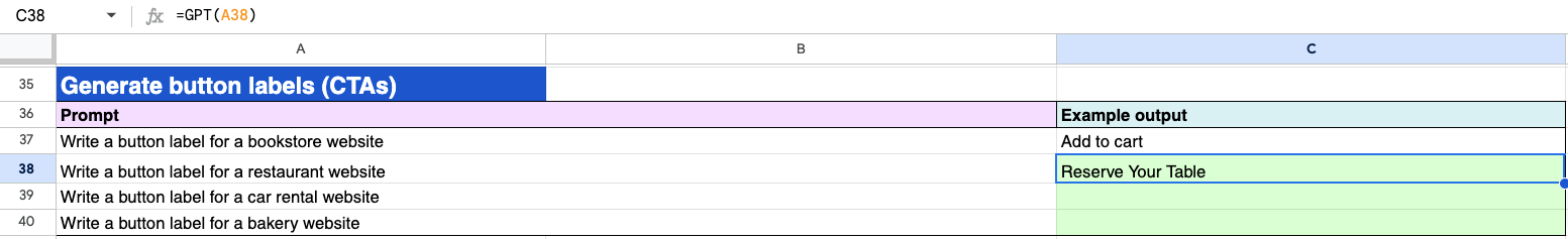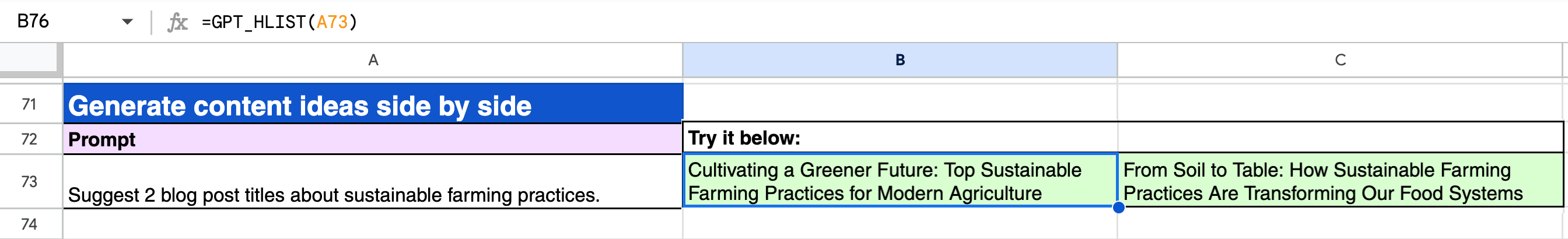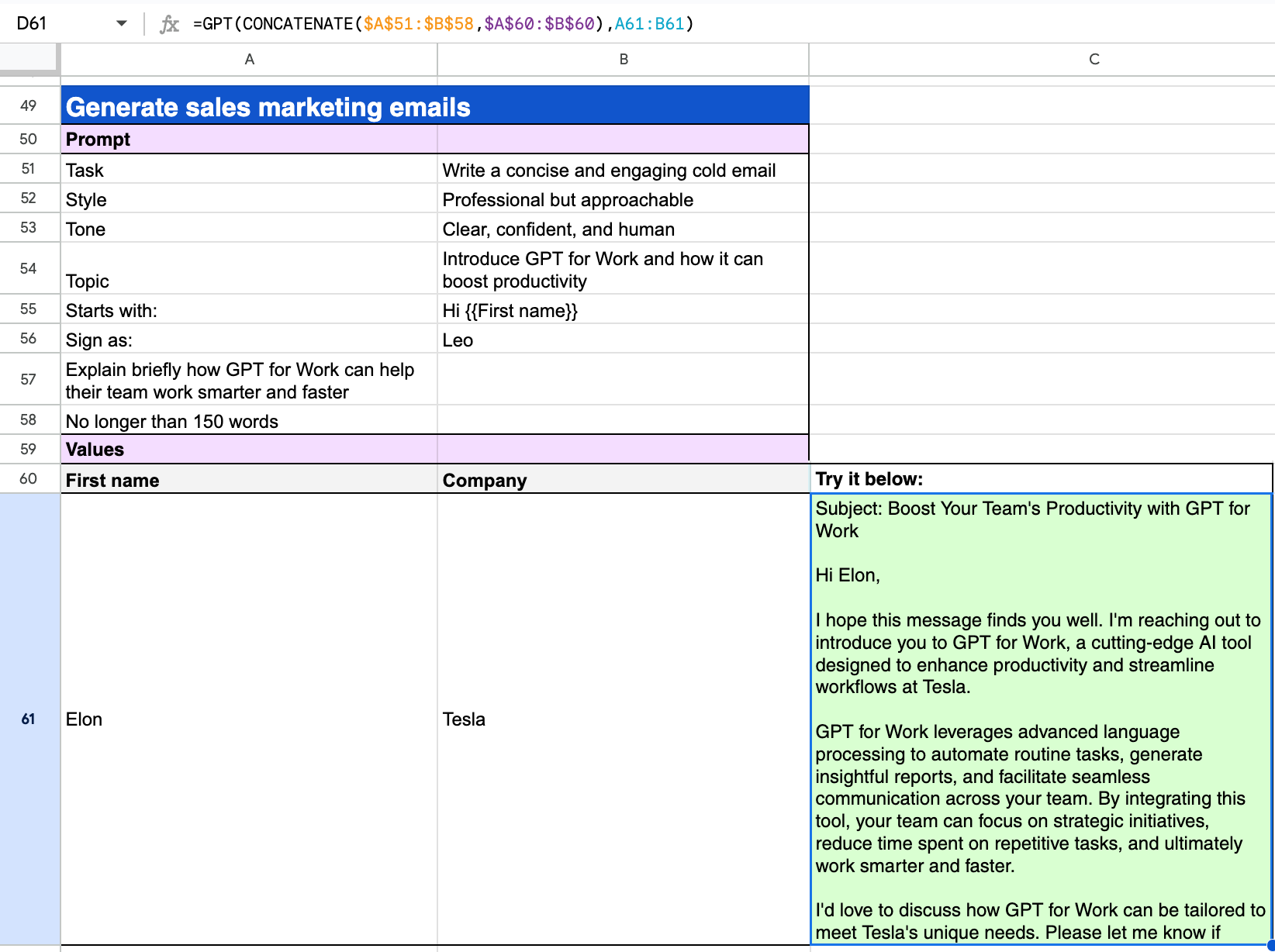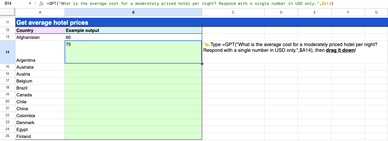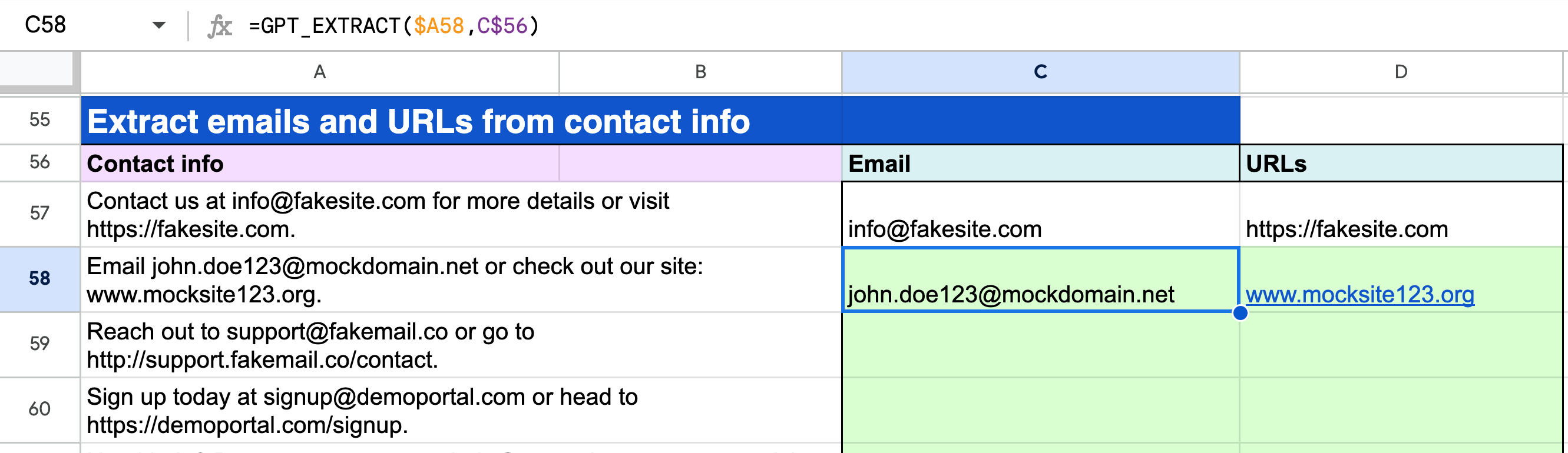 See GPT functions in action with real-world examples using some of the functions included in GPT for Sheets.
